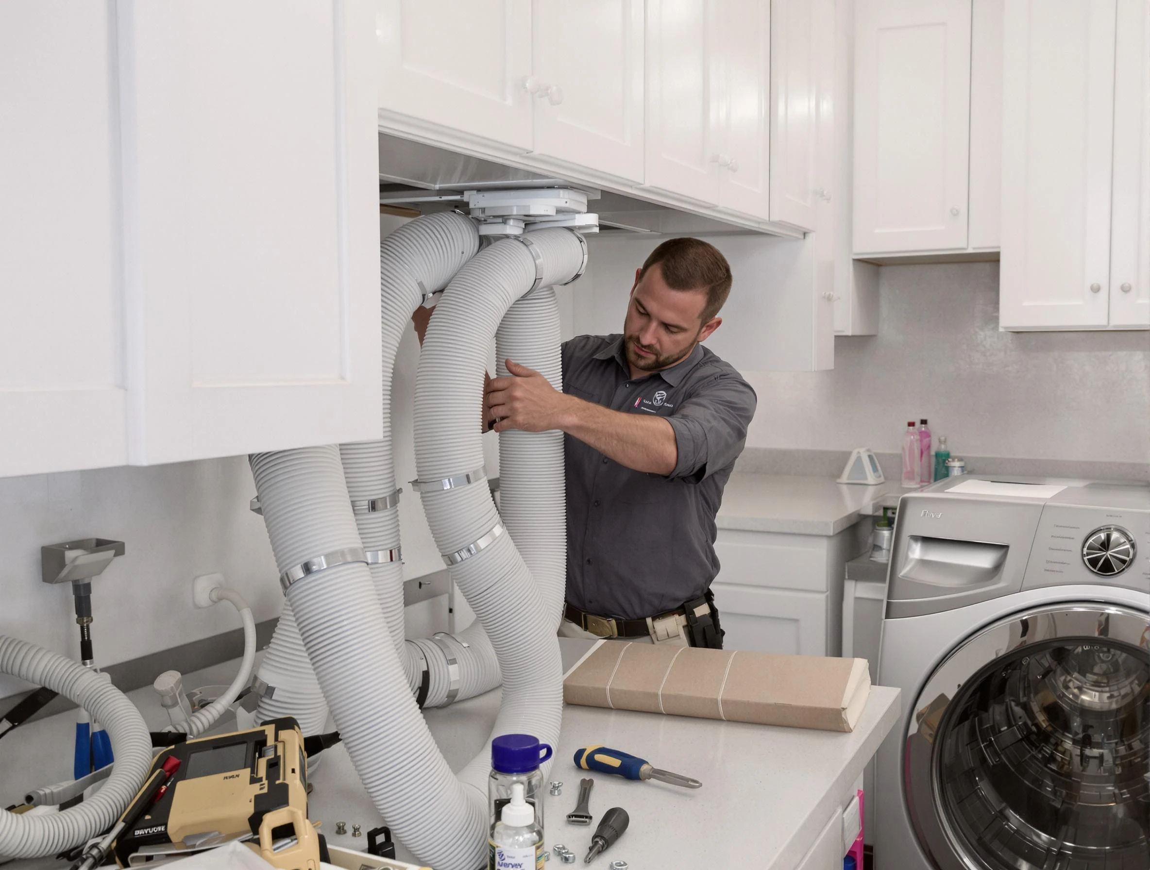 Costa Mesa Dryer Vent Cleaning's certified technicians ensure proper routing, secure connections, and optimal airflow. Professional installation prevents common issues like kinks, gaps, and improper lengths that can lead to fire hazards.
